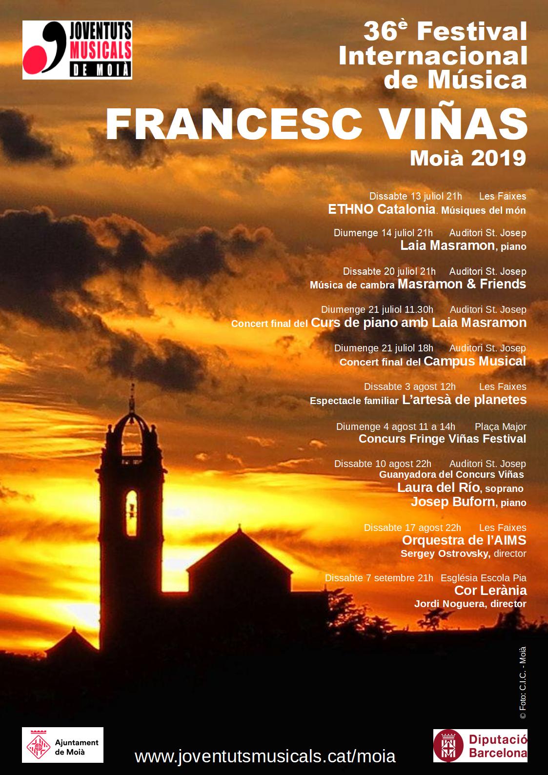 Moià acull el 36è Festival Internacional de Música Francesc Viñas amb una programació de juliol a setembre, organitzat per les Joventuts Musicals de Moià i la col·laboració de l’Ajuntament.