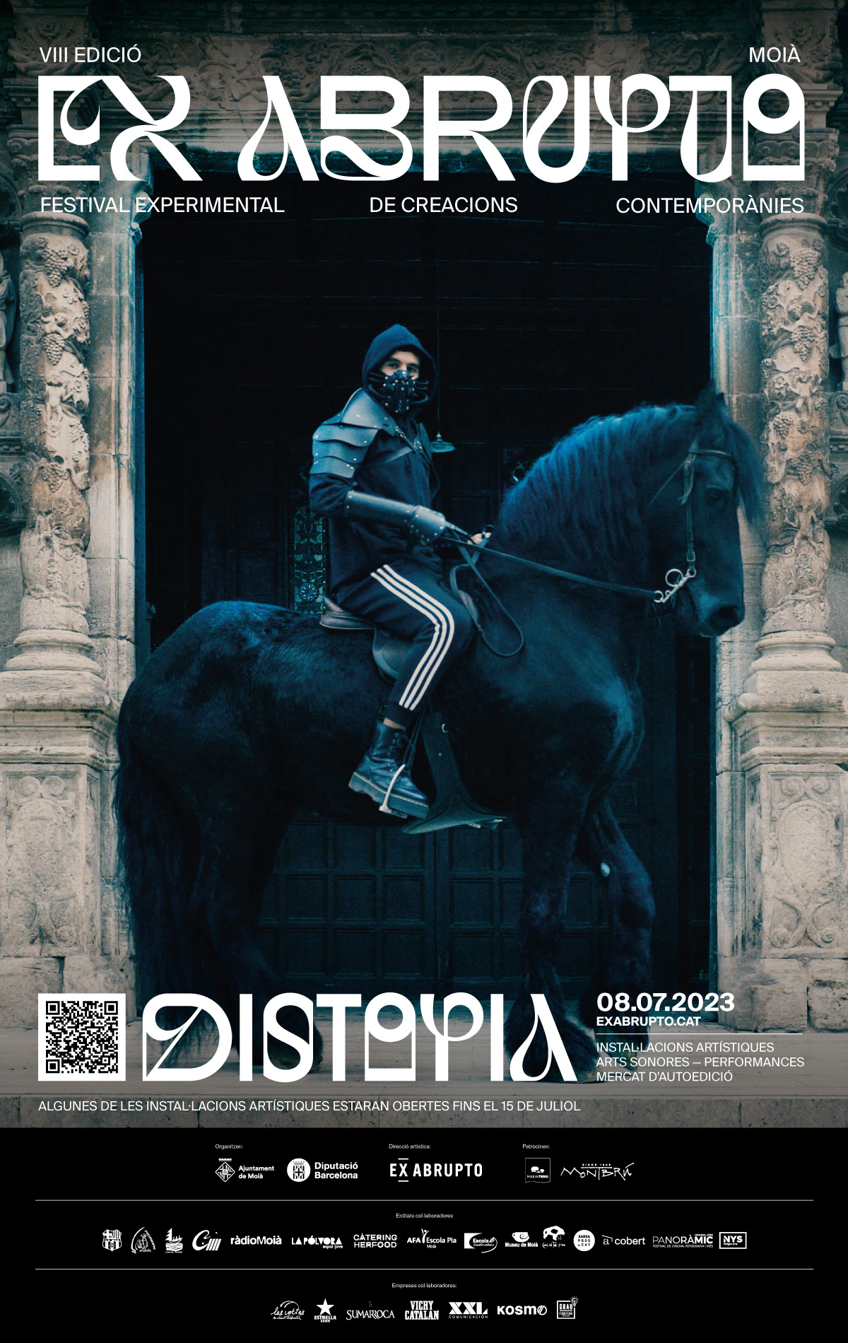 - Espectacle inaugural el divendres 7 de juliol, a la plaça Sant Sebastià de Moià on es realitzaran dos passis exclusius de l’acció inaugural a les 22:00 h i a les 22:30 h. El festival experimental de creacions contemporànies donarà el tret de sortida a la seva vuitena edició sota el lema Distopia amb un espectacle immersiu i interactiu de vídeomapping, dissenyat expressament per a l’ocasió. La peça inaugural incorpora en la seva composició la imatge del Sant Sebastià ubicada a l’homònima plaça, una imatge del segle XVII, que havia presidit la capella dedicada a Sant Sebastià i que va ser destruïda durant la Guerra Civil espanyola, el vídeomapping farà que el monument del sant prengui vida i formi part de la fantasia distòpica. Aquesta producció inèdita i dissenyada expressament pel festival, compta amb la direcció artística del col·lectiu, s’acompanya del Cor i Orquestra de Cambra del Moianès, a la part sonora s’hi suma la participació dels artistes audiovisuals Sito Ruiz i Marco Domenichetti i la irrupció de les arts en viu d’Antídrom, col·lectiu rupturista que col·labora habitualment en el festival.
