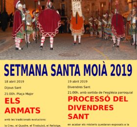 Dijous 18 d’abril a les 21.00h a la plaça Major de Moià, Els Armats, amb les tradicionals evolucions: la Creu, el Quadre, el...