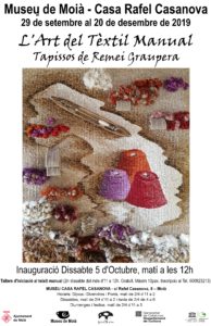 Aquesta exposició, d’accés gratuït, estarà al Museu fins el divendres 20 de desembre i exposa prop d’una dotzena de teixits manuals realitzats per l’artista i artesana moianesa Remei Graupera, i s’acompanyarà pels telers, materials i eines necessaris per la seva producció.