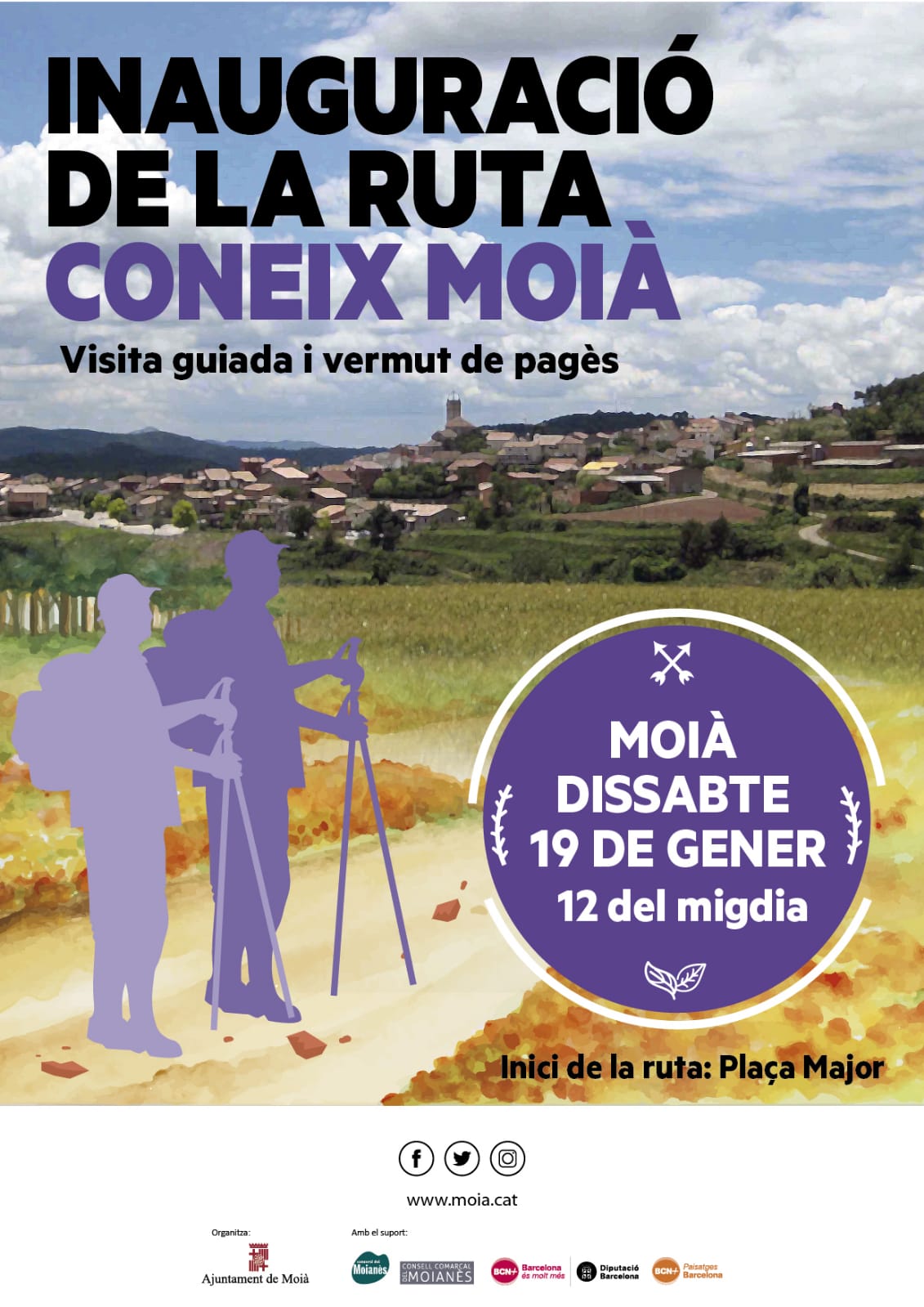 Inauguració de la ruta Coneix Moià! Dissabte 19 de gener no et perdis la visita guiada i el vermut de pagès! Inici de la ruta a la plaça Major a les 12.00h. No us ho perdeu!