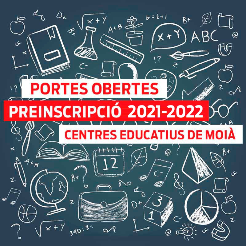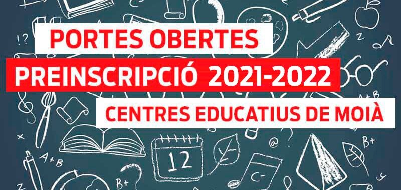 Els centres educatius de Moià ofereixen jornades de portes obertes en les dates prèvies als períodes de preinscripció i matrícula pel curs 2021/2022 per a les famílies que han de començar el segon cicle d’educació infantil, primària, l’educació secundària obligatòria, el batxillerat i cicles de formació professional.