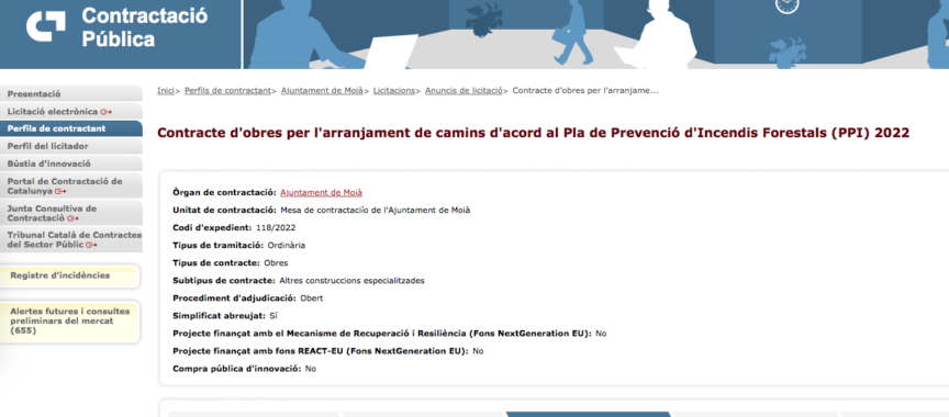 Consulteu el perfil del contractant de l’Ajuntament de Moià: