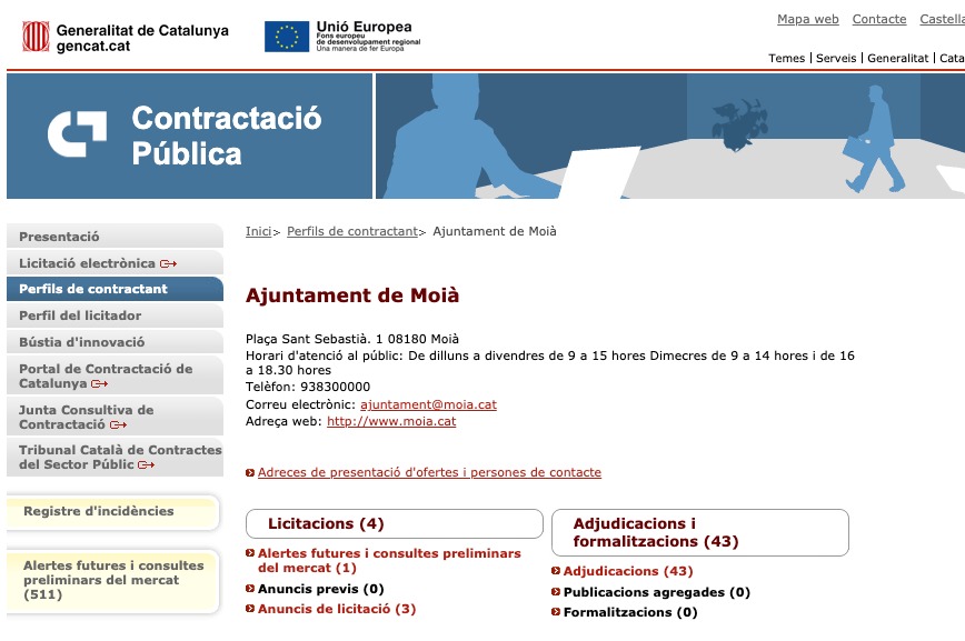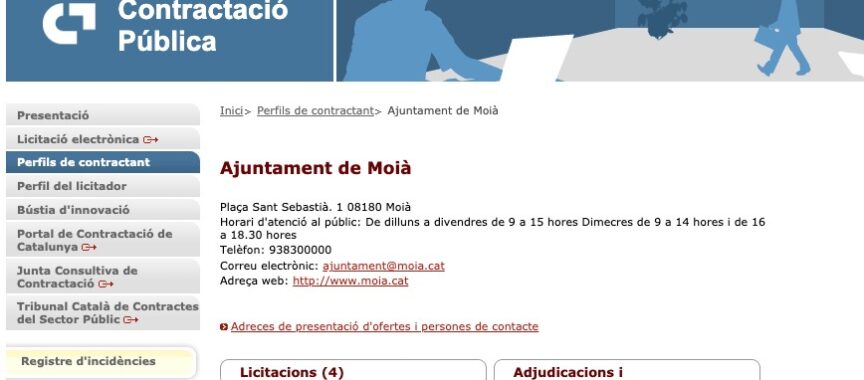 Consulteu el perfil del contractant de l’Ajuntament de Moià:
