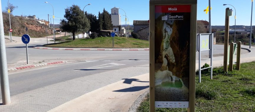 Moià estrena nou plafó informatiu del Museu Rafel Casanova, les Coves del Toll i el Geoparc Mundial Unesco a Moià, a la rotonda del Dolmen sortint de Moià en direcció a Collsuspina.