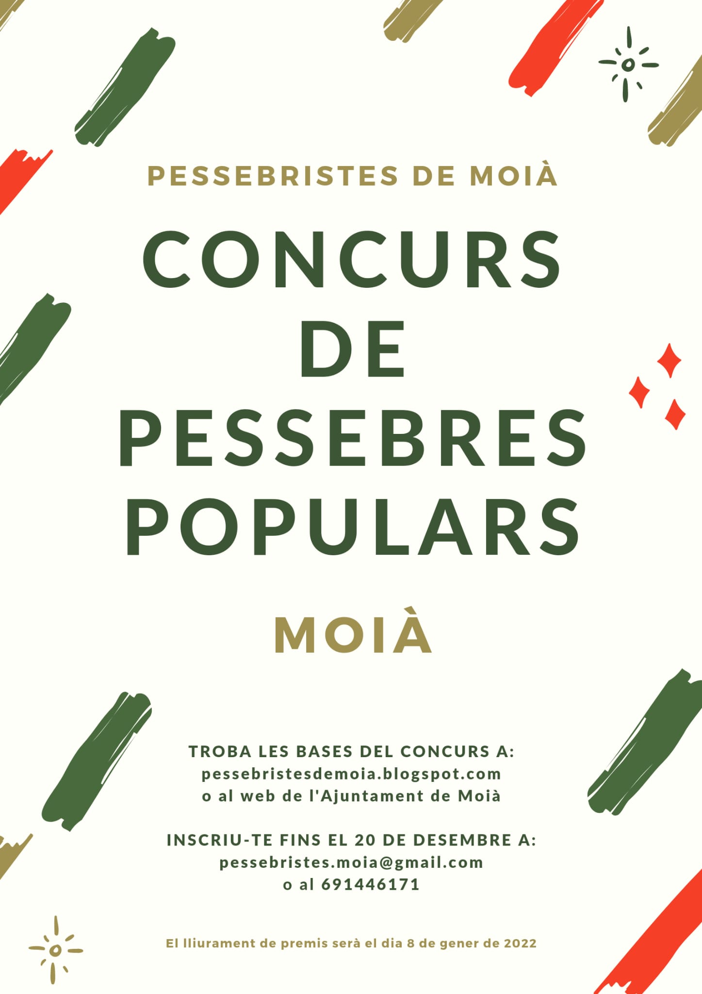 L’Associació Pessebristes de Moià organitza el 3r Concurs de Pessebres de Moià en categories d’infantil fins a 12 anys i adults.
